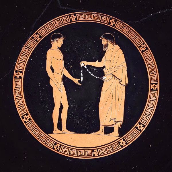 Als de jongen de helft is van een mannelijk wezen zal hij van nature van mannen houden, hij zal het prettig vinden ‘met mannen samen te liggen’ en ‘hen te omhelzen’. (sumpeplegmenoi)